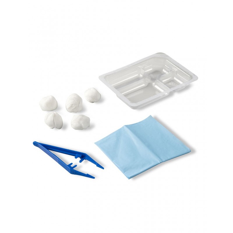 1 sterile field, 1 anatomical tweezers, 5 mesh deputers m3 plum, 3 compartments