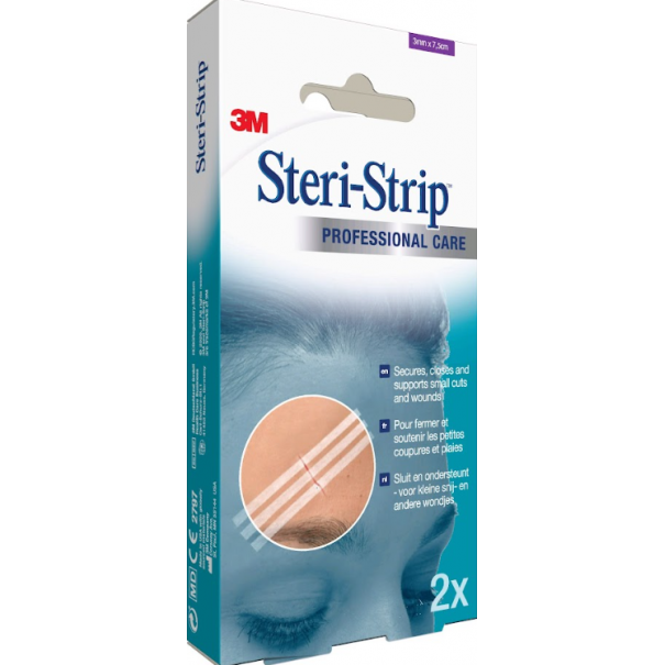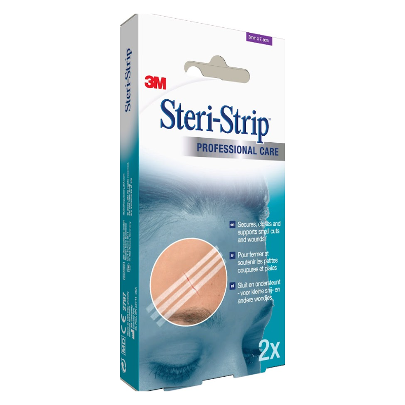 3M ™ Steri-Strip ™ reinforced wound closures are the original strips consisting of a microporous non-woven material that lets the skin "breathe" and with reinforced filaments for extra strength. A hypoallergenic pressure -sensitive adhesive layer.