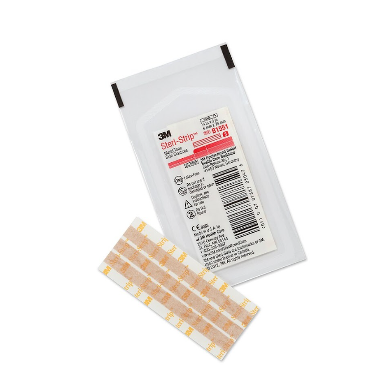 3M ™ Steri-Strip ™ reinforced wound closures are the original strips consisting of a microporous non-woven material that lets the skin "breathe" and with reinforced filaments for extra strength. A hypoallergenic pressure -sensitive adhesive layer.