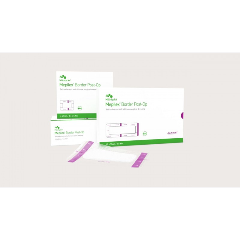 You can use Mepilex® Border Post-Op for exuding wounds, such as surgical wounds, cut or scrapes. The design is specifically suitable for postoperative use for surgical wounds and blood absorption. Thanks to the Flex technology, it is very flexible - ideal for surgical wounds on joints, such as hips and knees.
