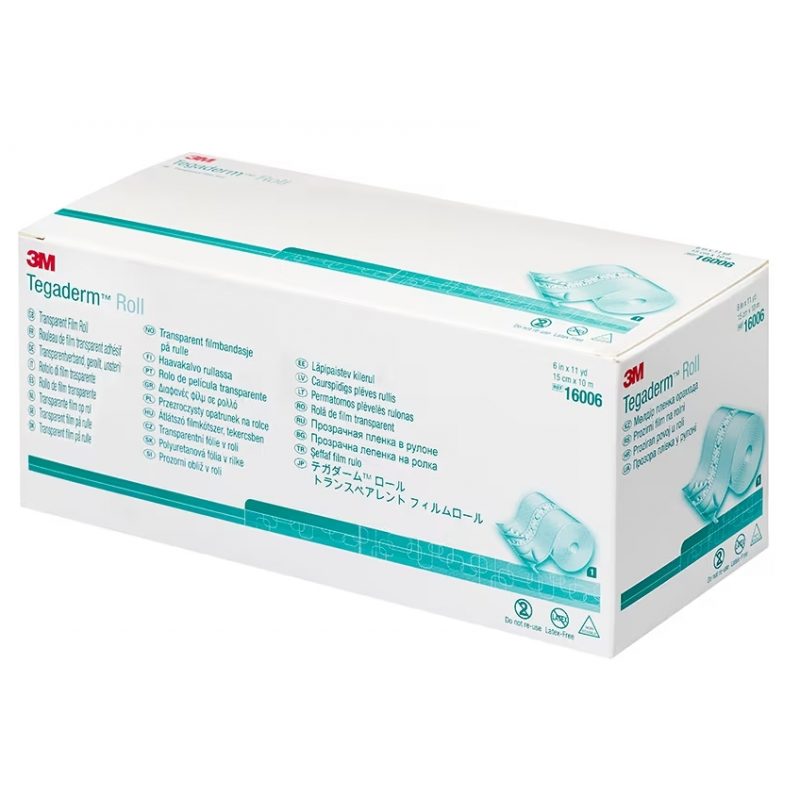 This non-sterile 3M ™ Tegaderm ™ transparent film dressing on a role forms a bacterial and viral barrier while fixing medical devices and primary connections on the skin. Can be worn during baths or showering.