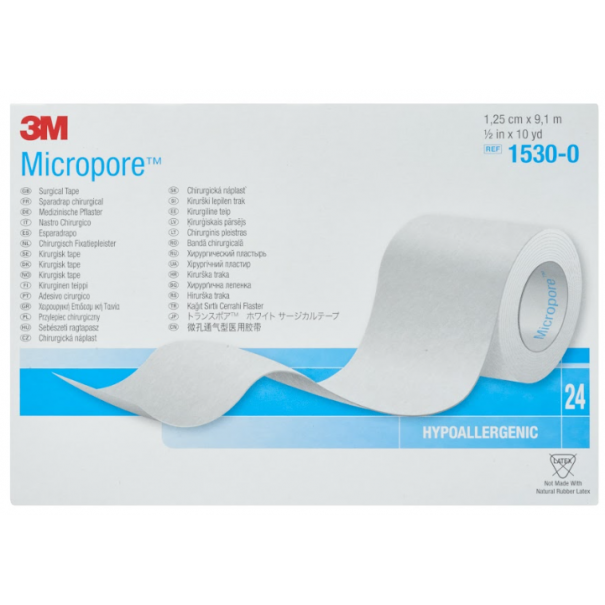 3M ™ Micropore ™ Surgical Hechts Plaster, 1530-0, 1.3 cm x 9.1 m, 24 pieces/box