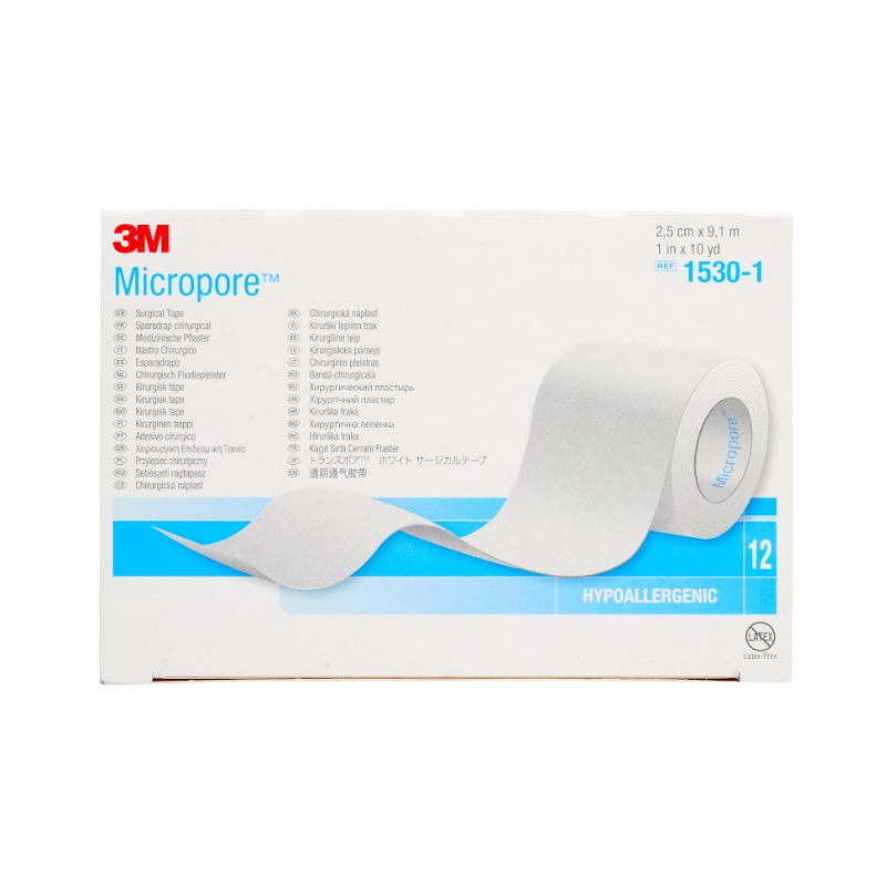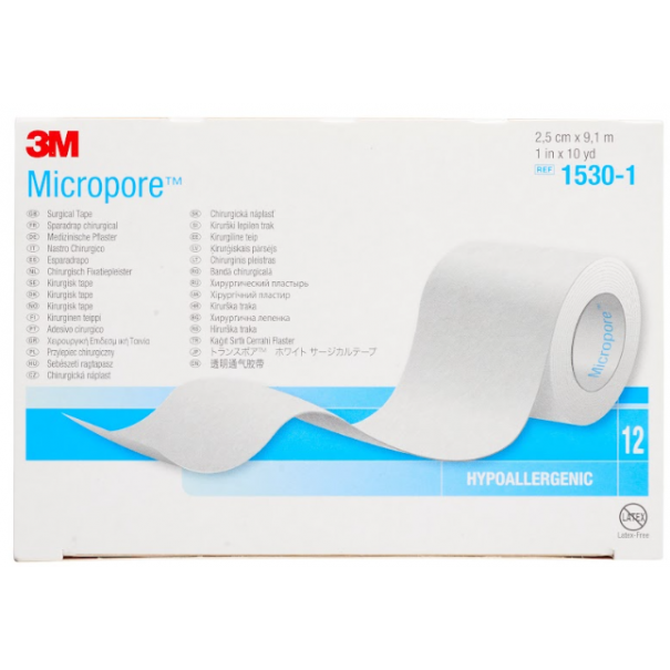 Plâtre hôte chirurgical 3M ™ Micropore ™, 1530-1, 2,5 cm x 9,1 m, 12 pièces / boîte