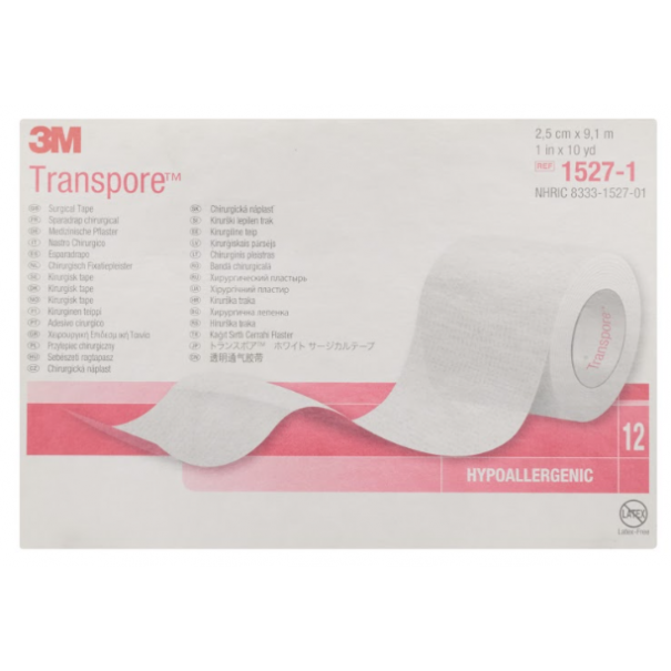 Plâtre d'adhésif médical 3M ™ Transpore ™, 1527-1, 2,5 cm x 9,1 m, 12 pièces / boîte