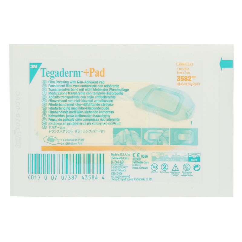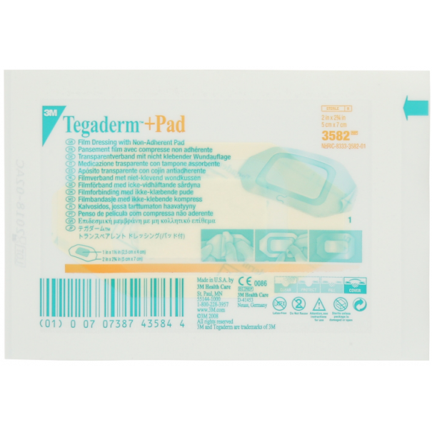 Bandage transparent 3M ™ Tegaderm ™ + PAD avec coussin absorbant, 3582, 5 cm x 7 cm, 50 pièces / boîte