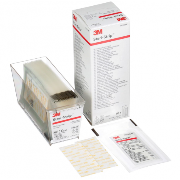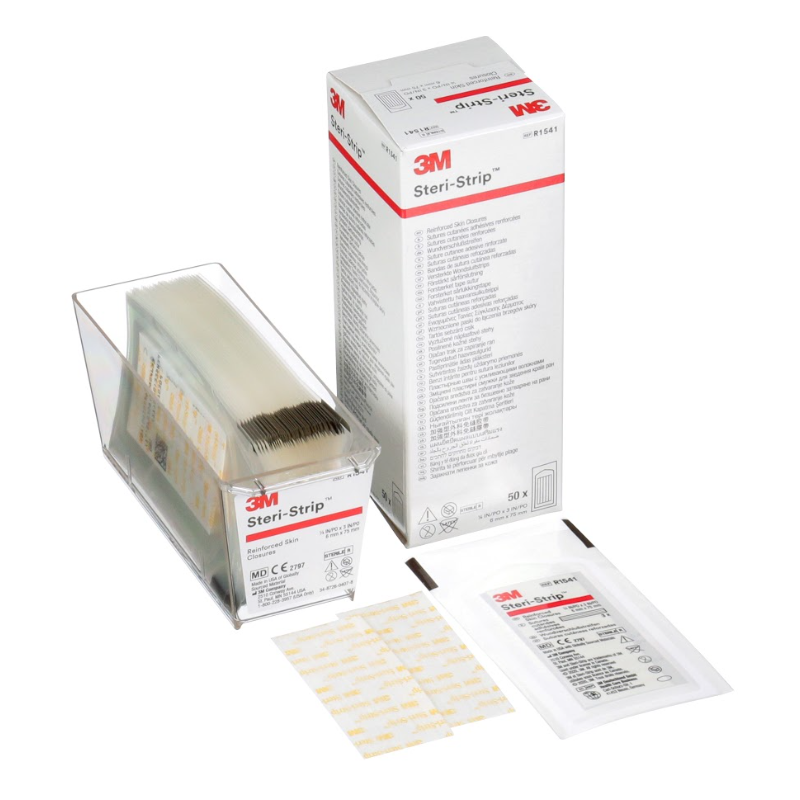3M™ Steri-Strip™ versterkte wondsluitingen zijn de originele strips bestaand uit een microporeus non-woven materiaal dat de huid laat "ademen" en met versterkte filamenten voor extra stevigheid. Een hypoallergene drukgevoelige kleeflaag.