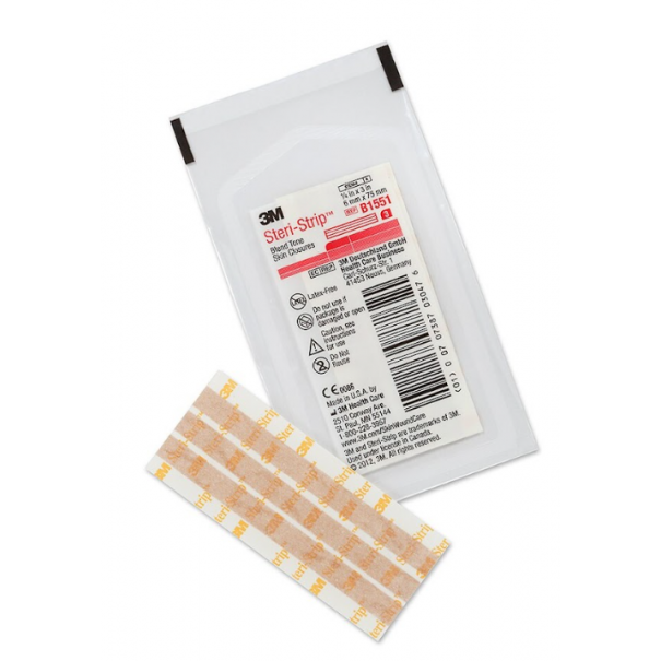 3M™ Steri-Strip™ versterkte wondsluitingen zijn de originele strips bestaand uit een microporeus non-woven materiaal dat de huid laat "ademen" en met versterkte filamenten voor extra stevigheid. Een hypoallergene drukgevoelige kleeflaag.