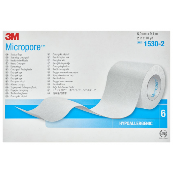 3M™ Micropore™ Chirurgische Hechtpleister, 1530-2, 5 cm x 9.1 m, 6 stuks/doos